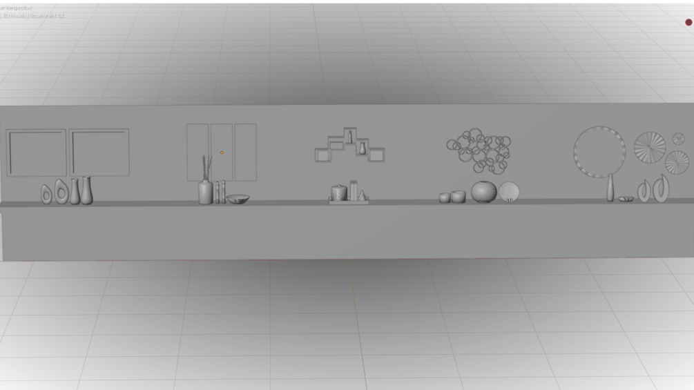 A real-world scale living room decorations that comes in 5 colors: white, brown, black, golden and silver. This product includes models of vases, picture frames, candles, mirrors and more. It is ready to be used in any desired project such as gaming, cinematics, marketing, production, architecture, or as an interior design prop.