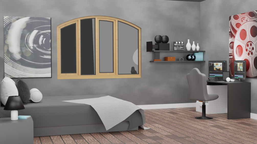 A real-world scale cinematographer bedroom with a rigged male bear character named Nam. This product is part of my DC22 collection which is a 3D mini-series I am creating. Both the bedroom as well as the character are ready to be used in any project such as gaming and cinematics. The character is fully rigged, including the shirt he is wearing.