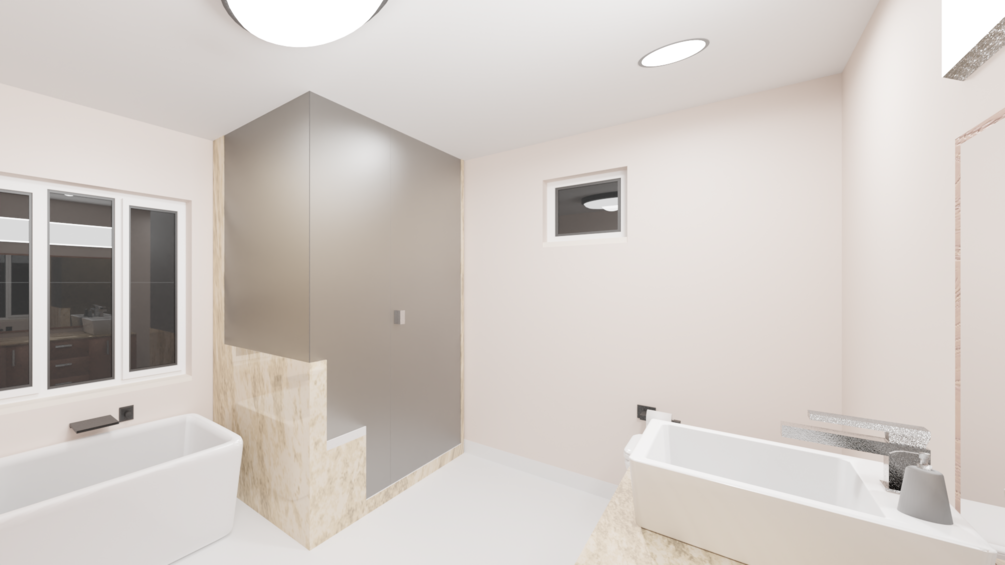 Rendered images (rendered in Cycles), solid view images, wireframe view images, and promotional videos that shows several views of the bathroom.